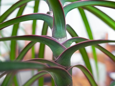Dragon Tree (Dracaena marginata) with two branches with blurred background