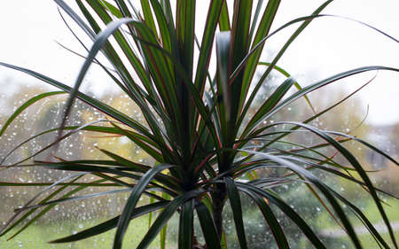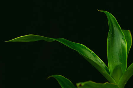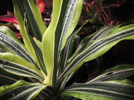 Fresh dreen dracaena leavs with water drops in the garden