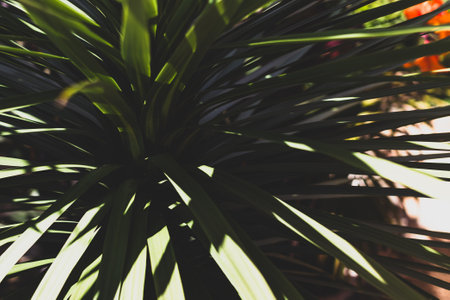 tropical looking cordyline grass tree close-up shot at shallow depth of field