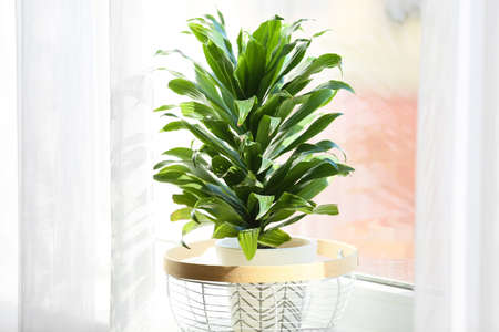 Beautiful green houseplant on windowsill, closeup