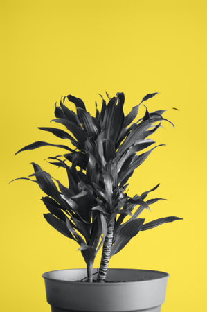 Modern interior with dracaena fragrans. Illuminating yellow and ultimately gray