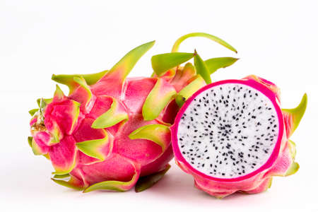Dragon fruit isolated on white background. Exotic tropical fruit with copy space.
