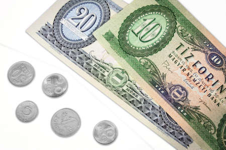 Old hungarian money, ten and twenty forint with change isolated on white