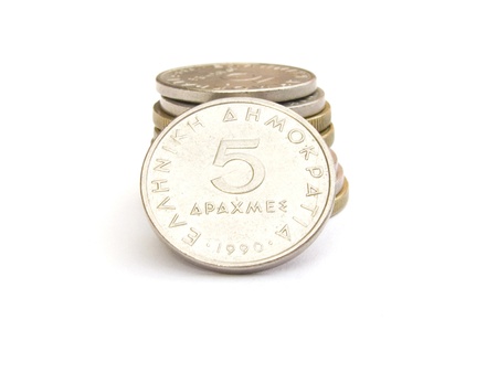 greek drachma coins isolated on white background