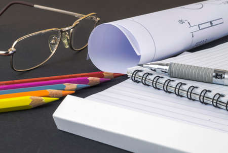 Engineering drawings and side light, protractor, notebook, term paper or thesis project. Applied mechanics
