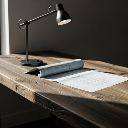 A cozy workspace featuring drafting plans and tools perfect for inspiring creativity in home design.