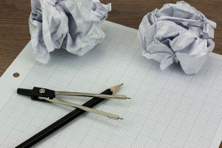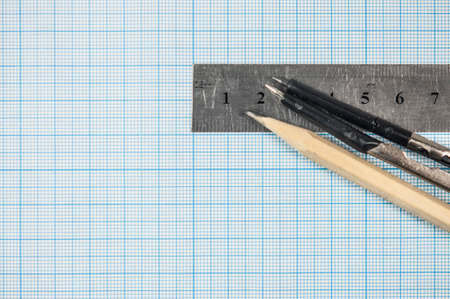 Technical drawing on graph paper at school, college or in the design office - useful equipment.