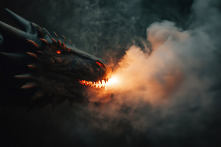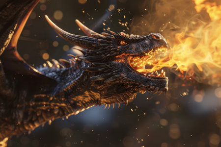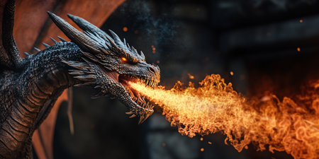 Detailed image of a dragon exhaling fire, perfect for fantasy themes