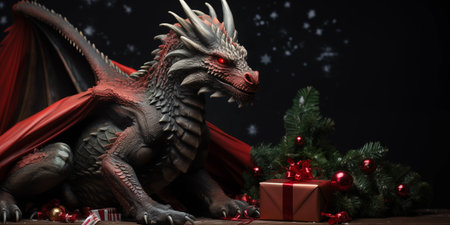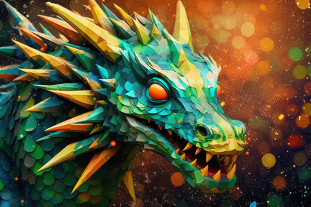 Dragon portrait with copy space. Symbol of Chinese new year 2024. AI generated.
