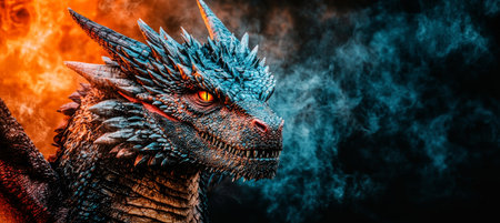 Dragon Portrait with Fire and Smoke Dramatic Scale and Lighting Illustration for Fantasy