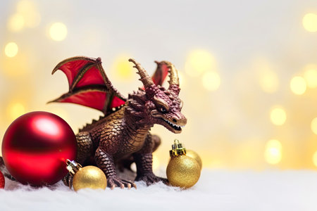 Dragon on the background of golden bokeh. Symbol of the New Year according to the Eastern calendar.