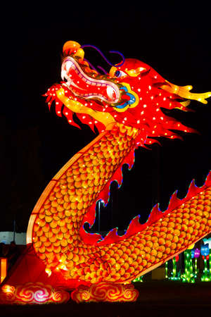 Dragon statue in chinese new year festival at night, Thailand.