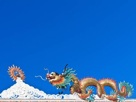 Golden dragon on the roof of the sky as a backdrop