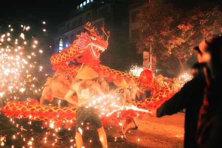 Chinese dragon dance in the traditional Chinese lunar new year festival, China