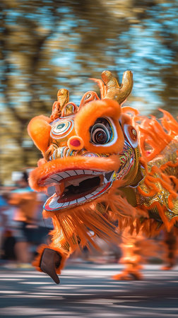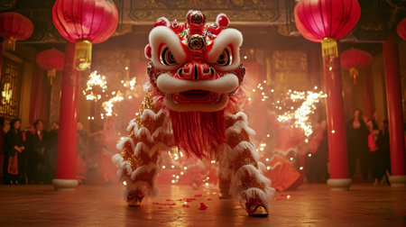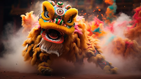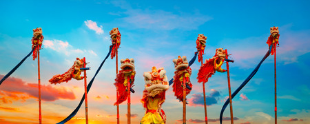 Chinese lion dance in the Chinese New Year festival. Chinese New Year is the year of the dog.