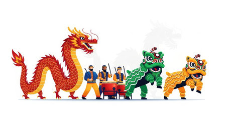 Traditional chinese dragon dance performance illustration. Suitable for chinese new year theme.