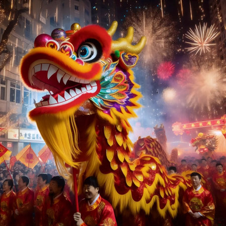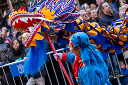 Lisbon, Portugal, 2025. Lunar New Year parade, celebrating the Asian community in Portugal. Festive atmosphere, cultural diversity. Ideal for travel, culture, festival promotion, and editorial design.