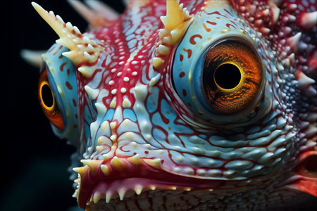 Scorpionfish up close, with its intricate details, vibrant colors and unique features. Fascinating and venomous marine creature. Generative AI