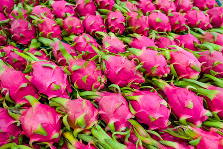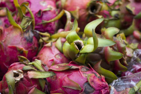 Many Pitaya or dragon fruit in the Vinh Hai market of Nha Trang Vietnam