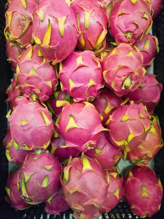 Fresh produce of dragon fruits or Hylocereus undatus 0r buah naga in Indonesian at the local market, healthy fresh fruit for salad or juice or any cooking options good for cooking recipes