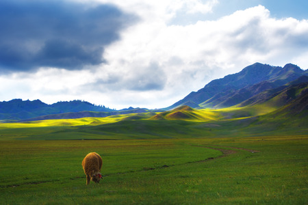 Scenery of Qasi grassland in Yili, Xinjiang in spring