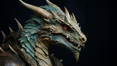 Dragon portrait with copy space. Symbol of Chinese new year 2024. AI generated.