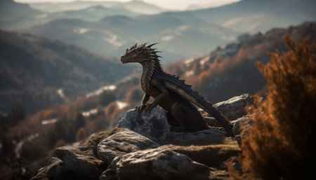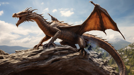 Dragon on top of the mountain. 3D render. Fantasy.