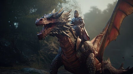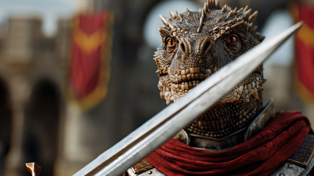 Fierce dragon warrior with sword and armor
