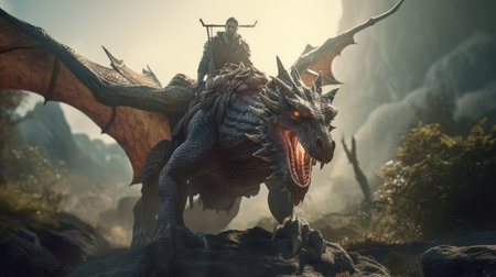 Hero battling a dragon in a fantastical world, depicting adventure and epic struggle.