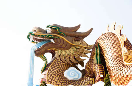 Exotic gold dragon on blue sky background.