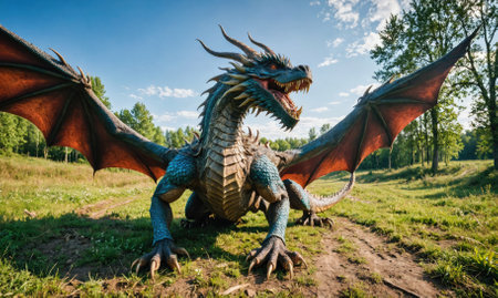 A fearsome dragon with scales and sharp claws AI generated
