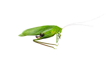 Single green grasshopper tropical insect isolated on white background , clipping path