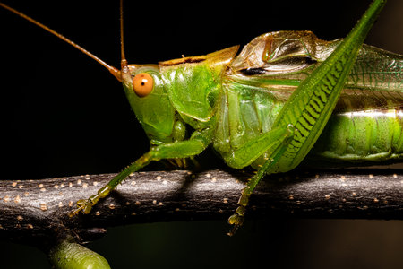 Macro photo of tailed bush cricket Barbitistes constrictus