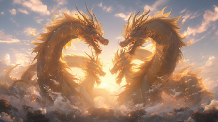Painting of golden dragons. Dragon year concept. High quality photo.
