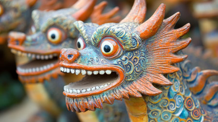 Closeup of an intricate chinese dragon statue with vibrant colors and textures, symbolizing power and culture