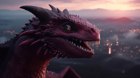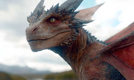 Majestic dragon with scales and horns in fantasy world.