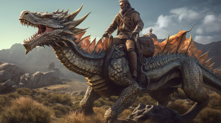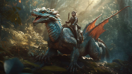 Fantasy dragon and knight. 3D illustration. Elements of this image furnished by NASA