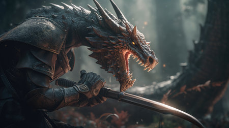 a black dragon, depicted in an intense close-up style, stands majestically in a forest. this captivating image, created using cinema4d and rtx technology, showcases the dragon's strong facial expression. the dragon's elaborate costume adds to its allure, while the dark gray and white color scheme enhances the overall mystique. captured with a ricoh gr iii camera. ai generated