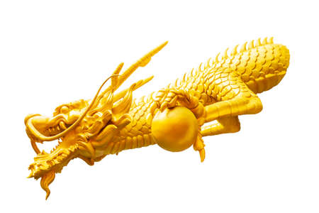 Chinese golden dragon statue isolated on white with clipping path, Feng Shui statuette.