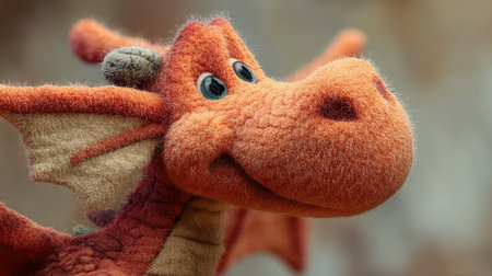 A charming plush dragon toy with a friendly expression and vibrant orange hue, perfect for children play and imaginative adventures.