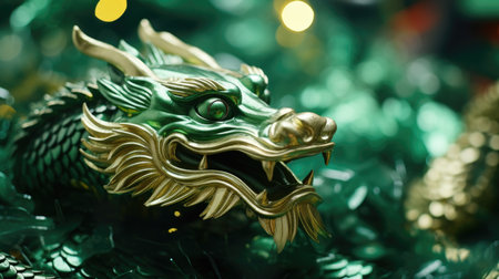 Vivid Green wooden dragon. 2024 symbol happy new year. Generate Ai