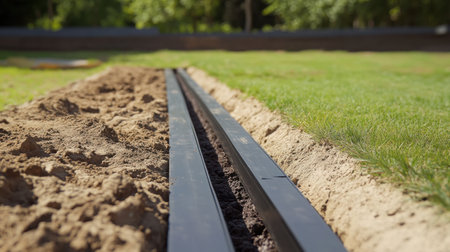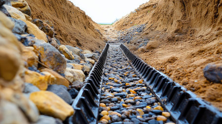 Richly detailed trench designed for installation of new water pipes in a serene environment