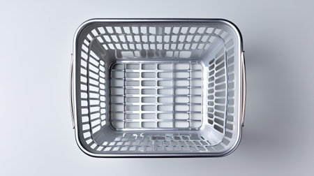 An empty shopping basket viewed from above, showcasing its sleek design and spacious interior, perfect for carrying groceries or personal items