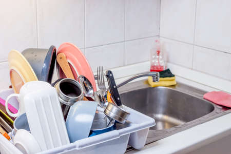 plastic strainer drainer inside kitchen sink prepared for hot food