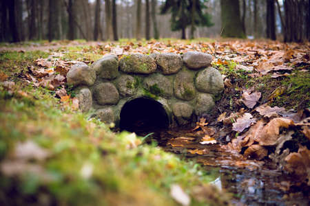 Drainage, sewer pipes, concrete pipes, leading water under the road