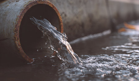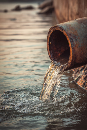 Visual representation of sewage contamination polluted water flowing from a pipe with impurities