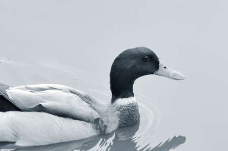 Male of Mallard or Wild Duck (Anas platyrhynchos) close-up. Monochrome