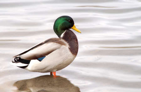 Male mallard wild duck stands in the water