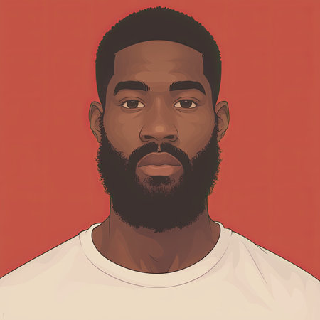 An artistic portrayal of a thoughtful man with a beard, depicted against a red background. The color contrast and expressive simplicity create a visually appealing illustrative portrait.