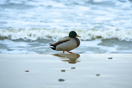 Duck walking on the beach